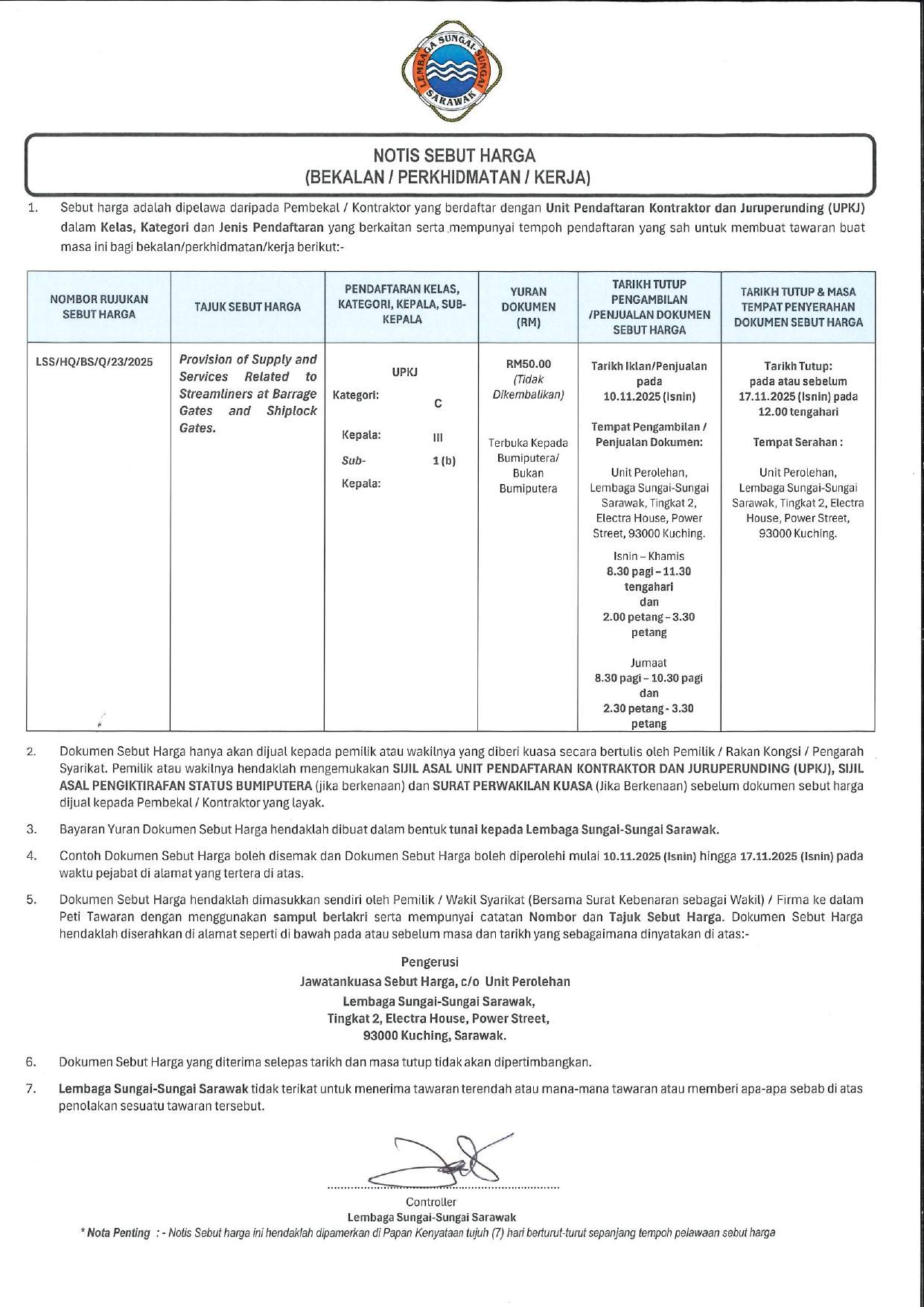 TERM CONTRACT FOR UPKJ GRASS CUTTING OF COMPOUNDS, ROAD COMPOUNOS POD VERGES, CONCRETE/ EARTH DRAINS AT KUALA TATAU CHECKING STATION FOR THE YEAR 2025/2029