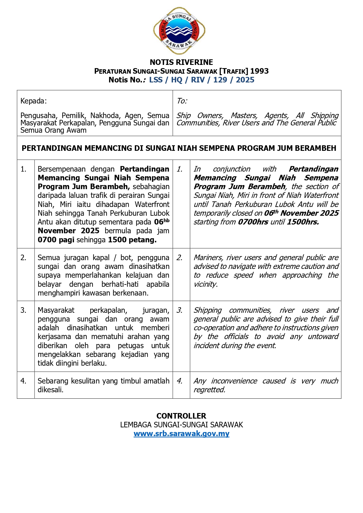 Issue No 37_LN 103 Sarawak Rivers Traffic (AMENDMENT TO THE SCHEDULE) REGULATIONS, 2025 (Made under section 38)