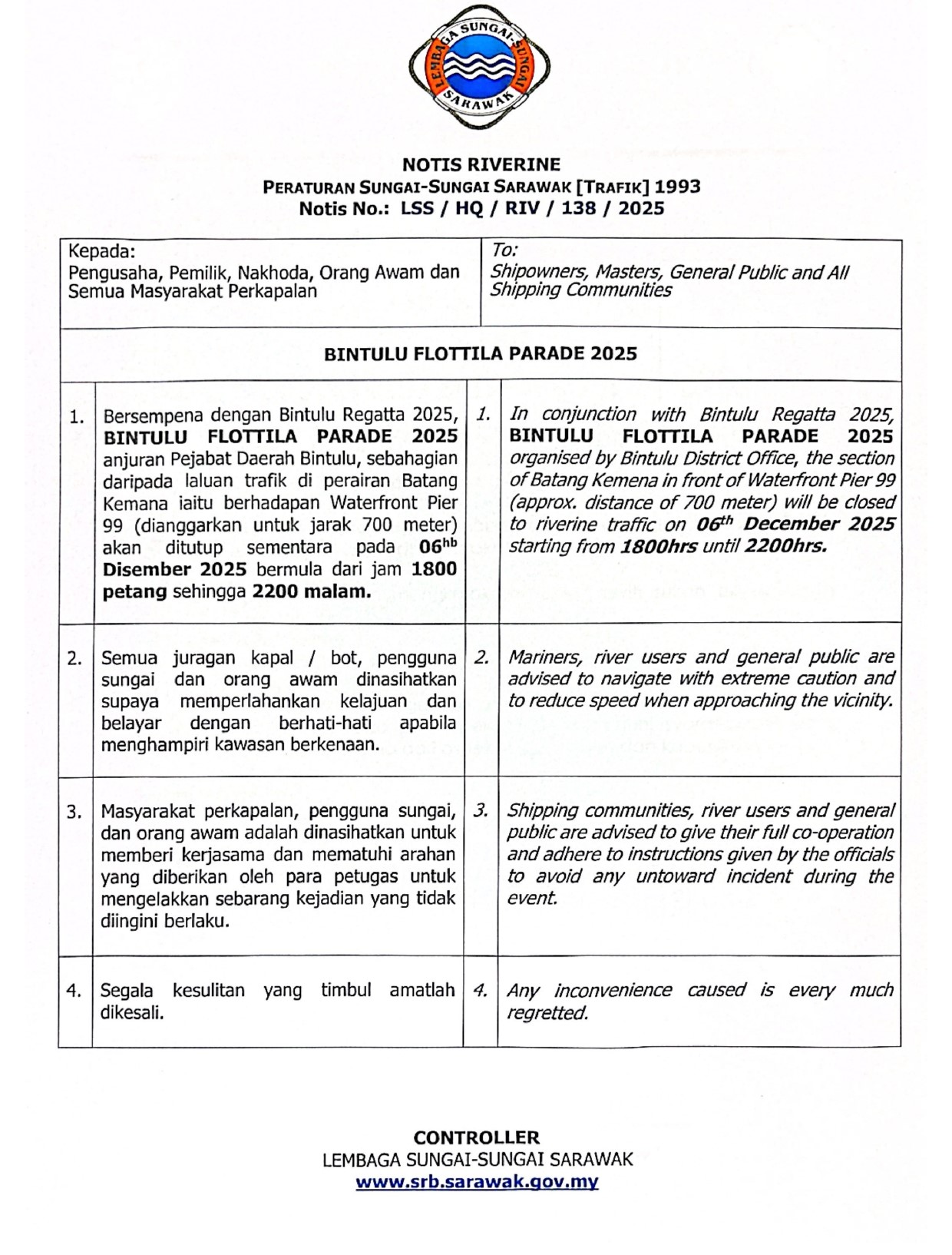 Issue No 37_LN 103 Sarawak Rivers Traffic (AMENDMENT TO THE SCHEDULE) REGULATIONS, 2025 (Made under section 38)