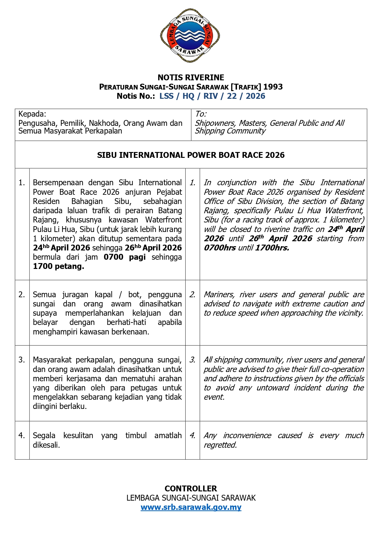 Kursus ini telah disertai oleh seramai 43 peserta, terdiri daripada pemilik dan pengusaha bot yang beroperasi di sekitar Empangan Bakun dan Sungai Belaga. Inisiatif ini merupakan usaha LSS bagi memastikan semua pengusaha bot memiliki sijil kompetensi serta mematuhi aspek keselamatan ketika menjalankan operasi di sungai.